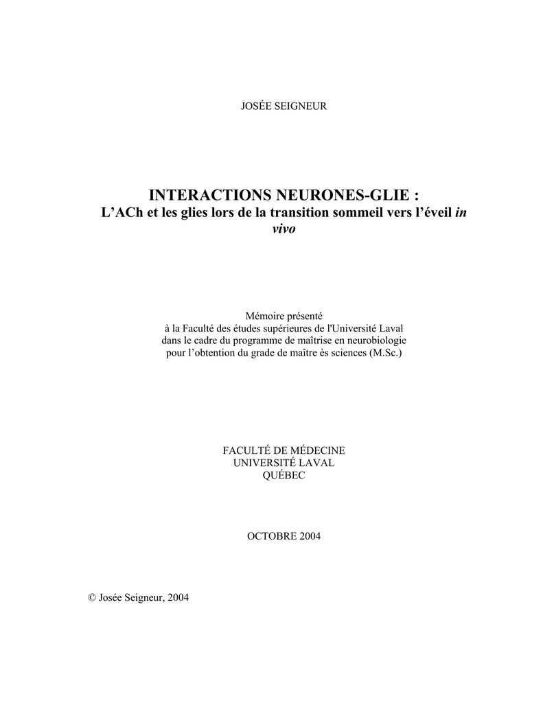 INTERACTIONS NEURONES-GLIE : L`ACh et les glies lors de la