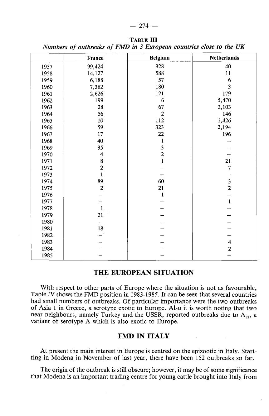 ed as one of the real success stories in bringing FMD under control. Table III shows