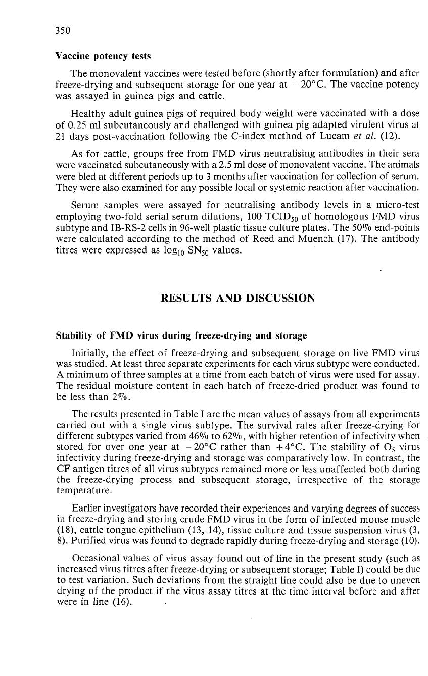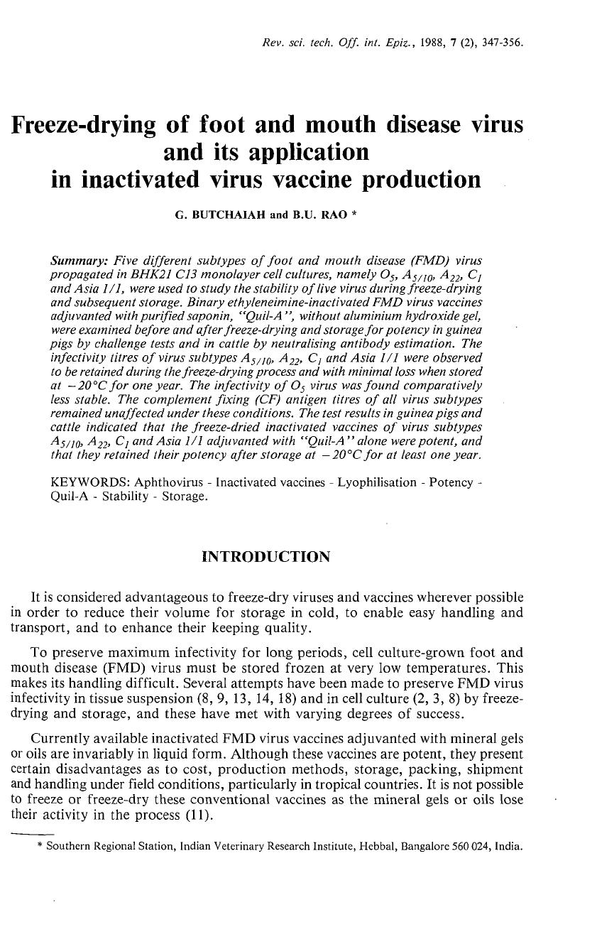KEYWORDS: Aphthovirus - Inactivated vaccines - Lyophilisation - Potency -