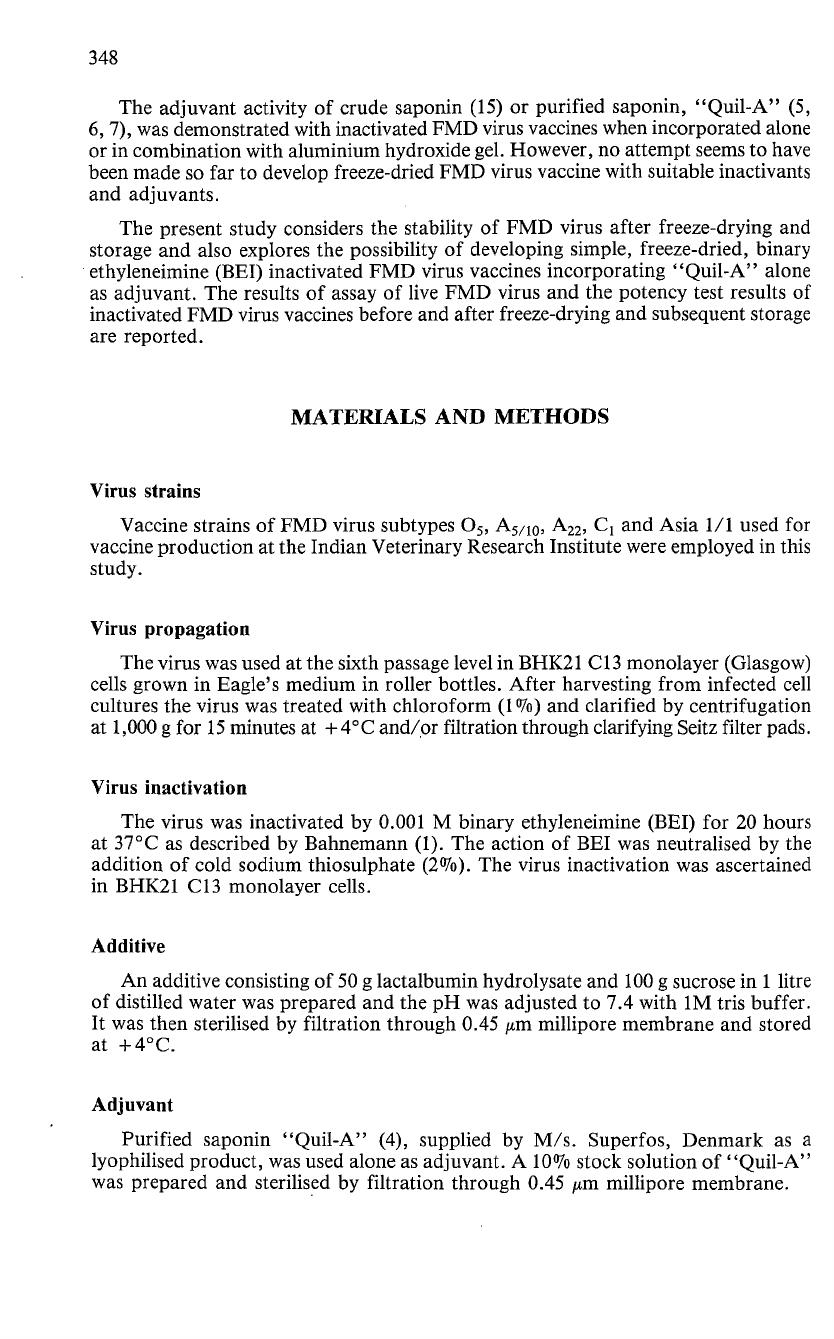 adjuvanted with purified saponin, "Quil-A", without aluminium hydroxide gel,