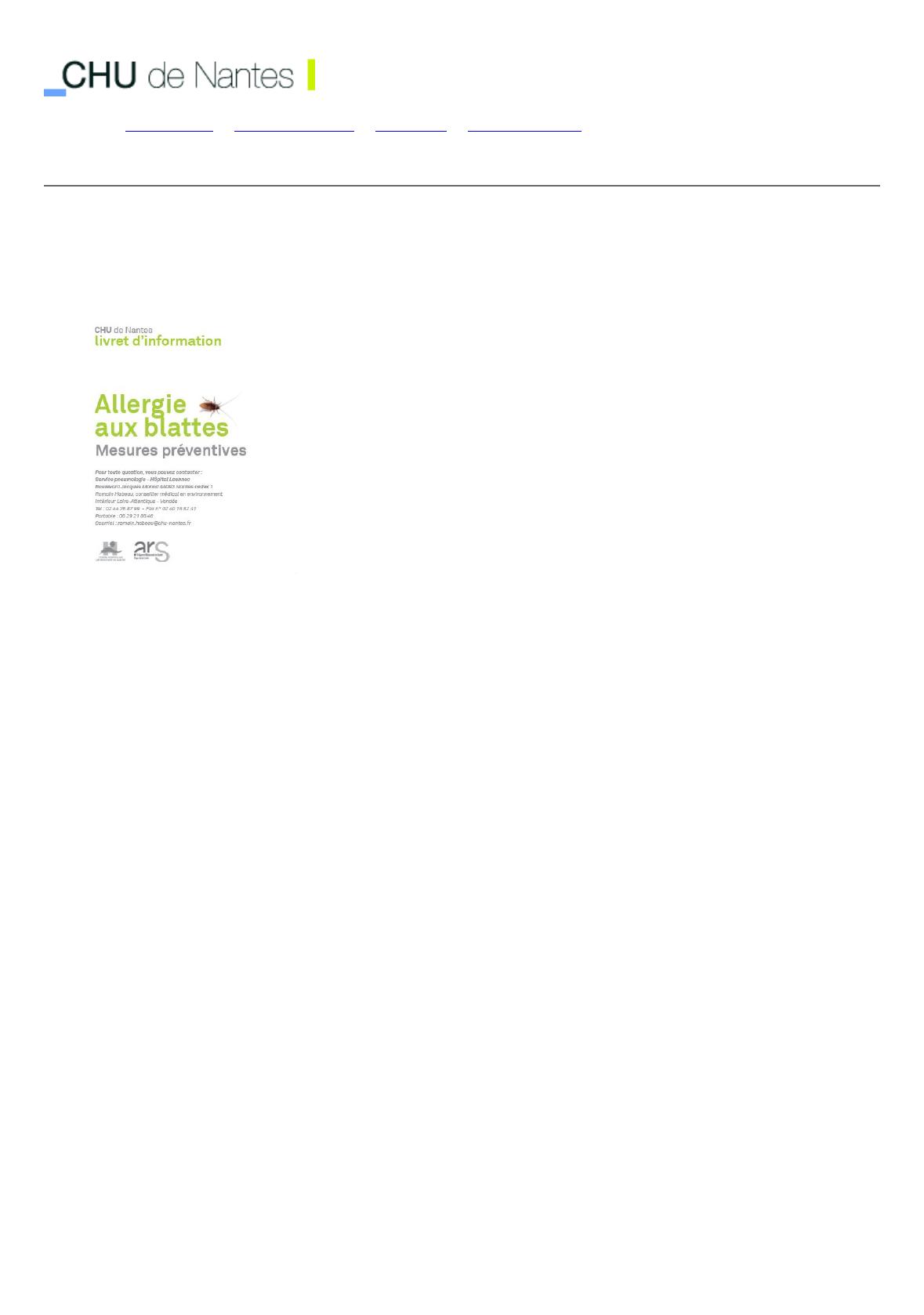 Mesures préventives pour lutter contre l'allergie aux blattes. Plaquette à télécharger ci-contre.