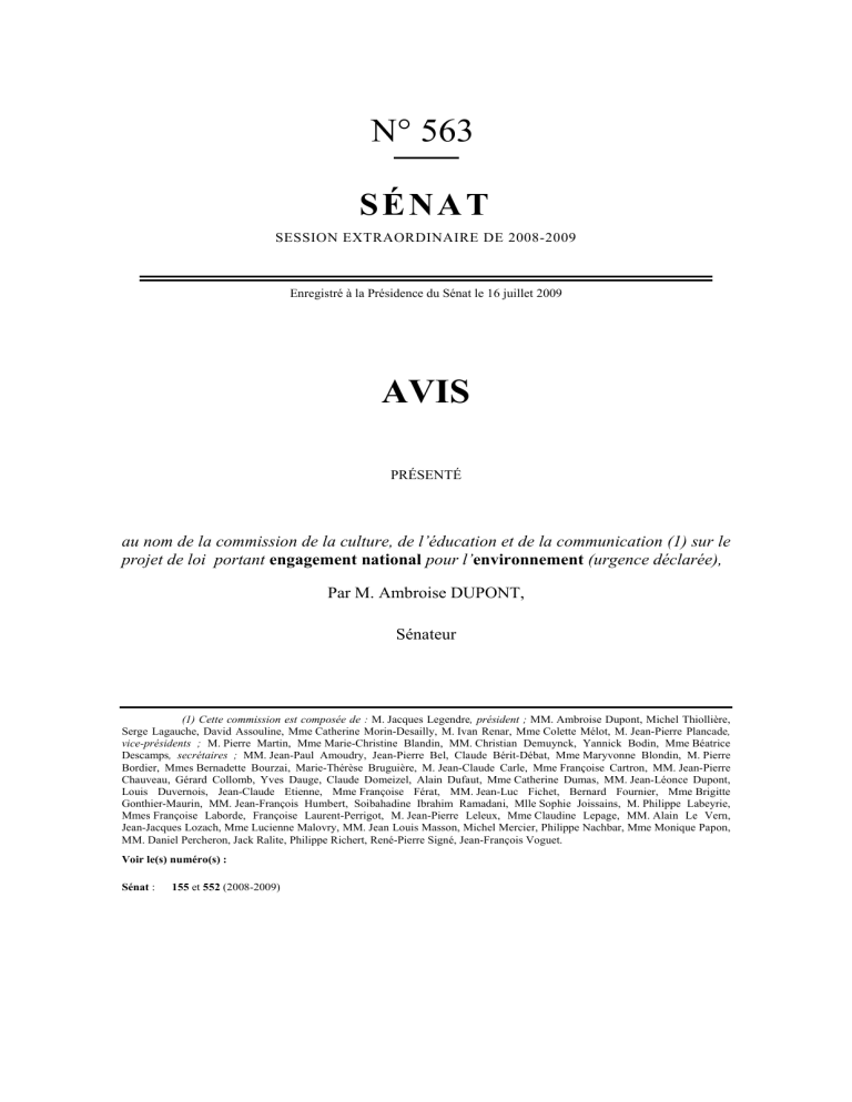 pour le projet de loi n° 155 (2008-2009) portant engagement national pour l’environnement.