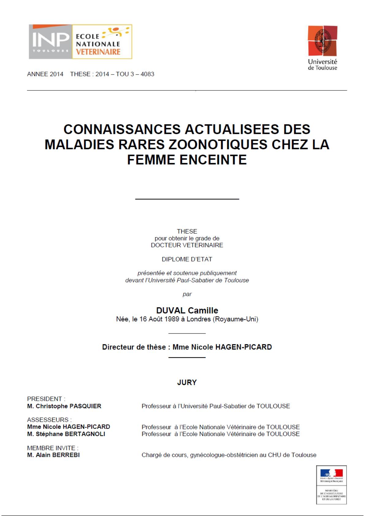 Mlle DIQUELOU Armelle, Pathologie médicale des Equidés et des Carnivores