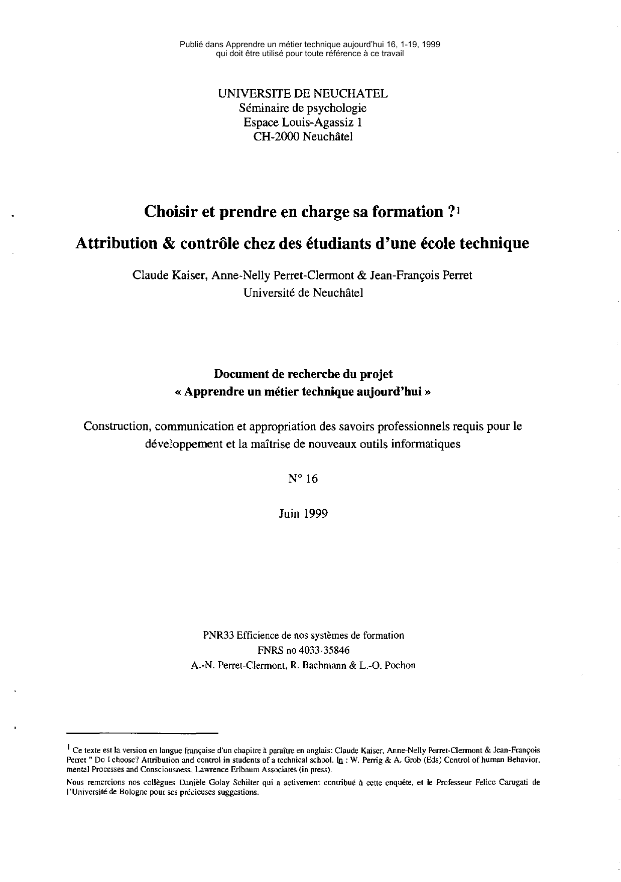 se poser la question de la relation entre réussite et attribution interne. Toujours en référence à