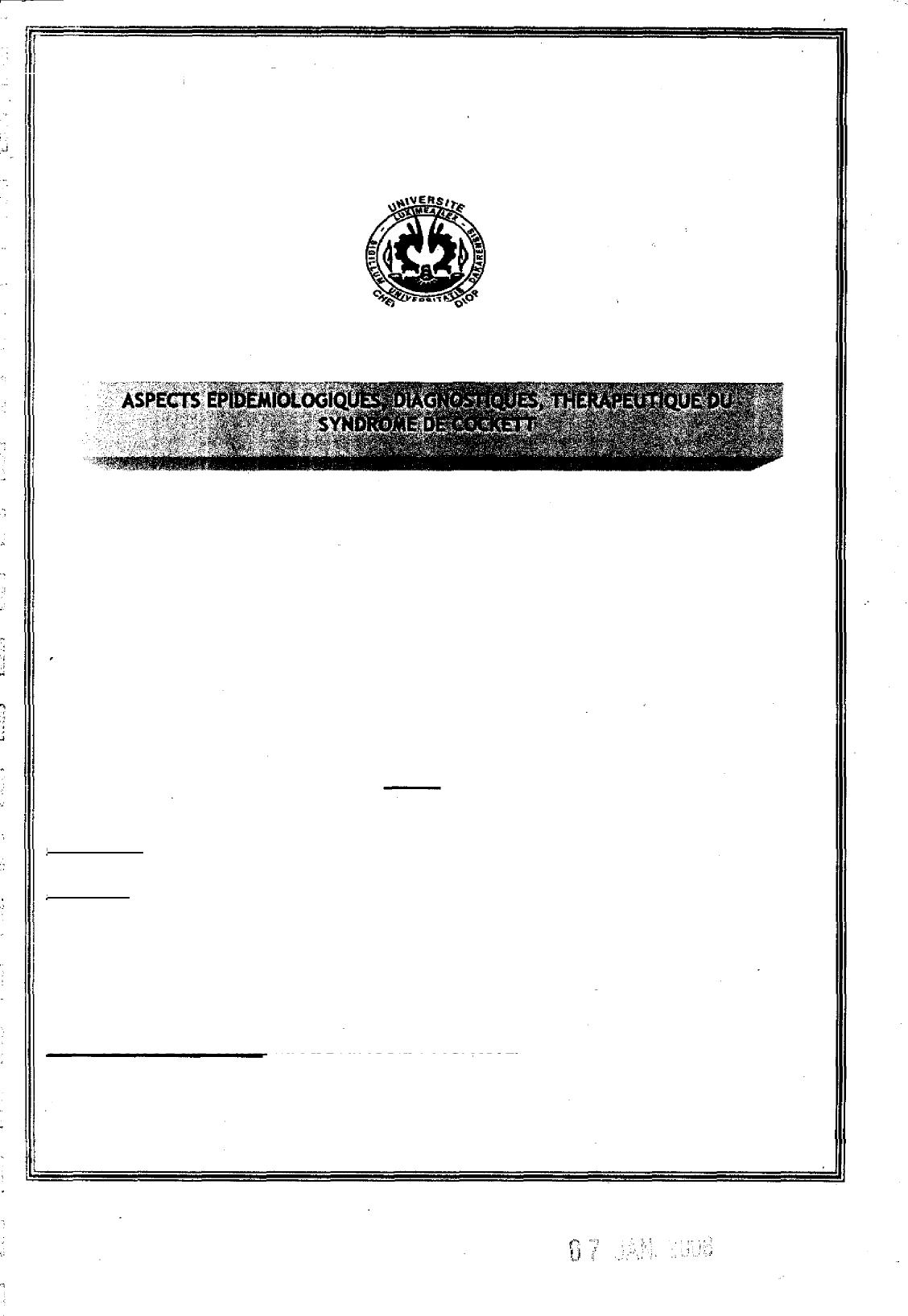 syndrome de Cockett à travers cette étude prospective menée au service