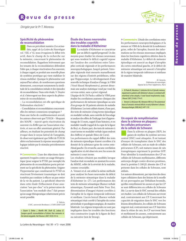 La Lettre du Neurologue - Vol. XII - n° 3 - mars 2008