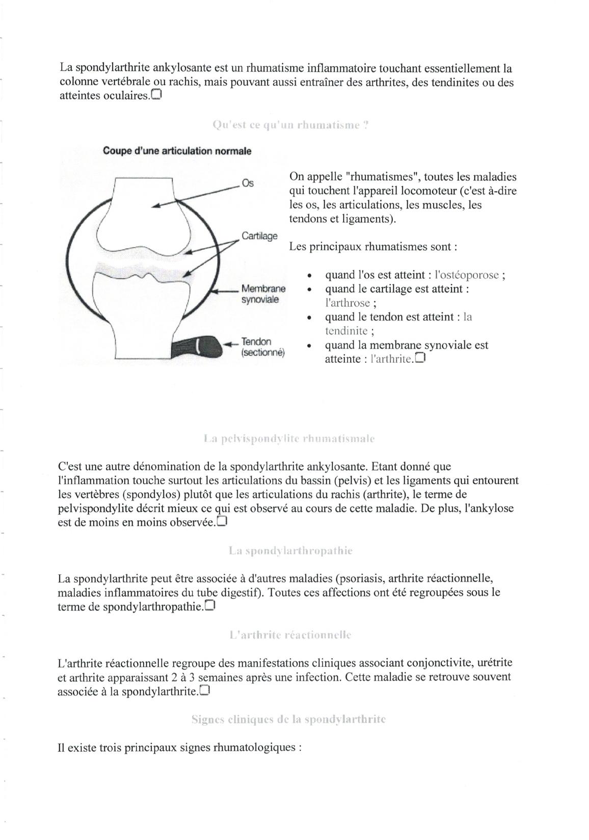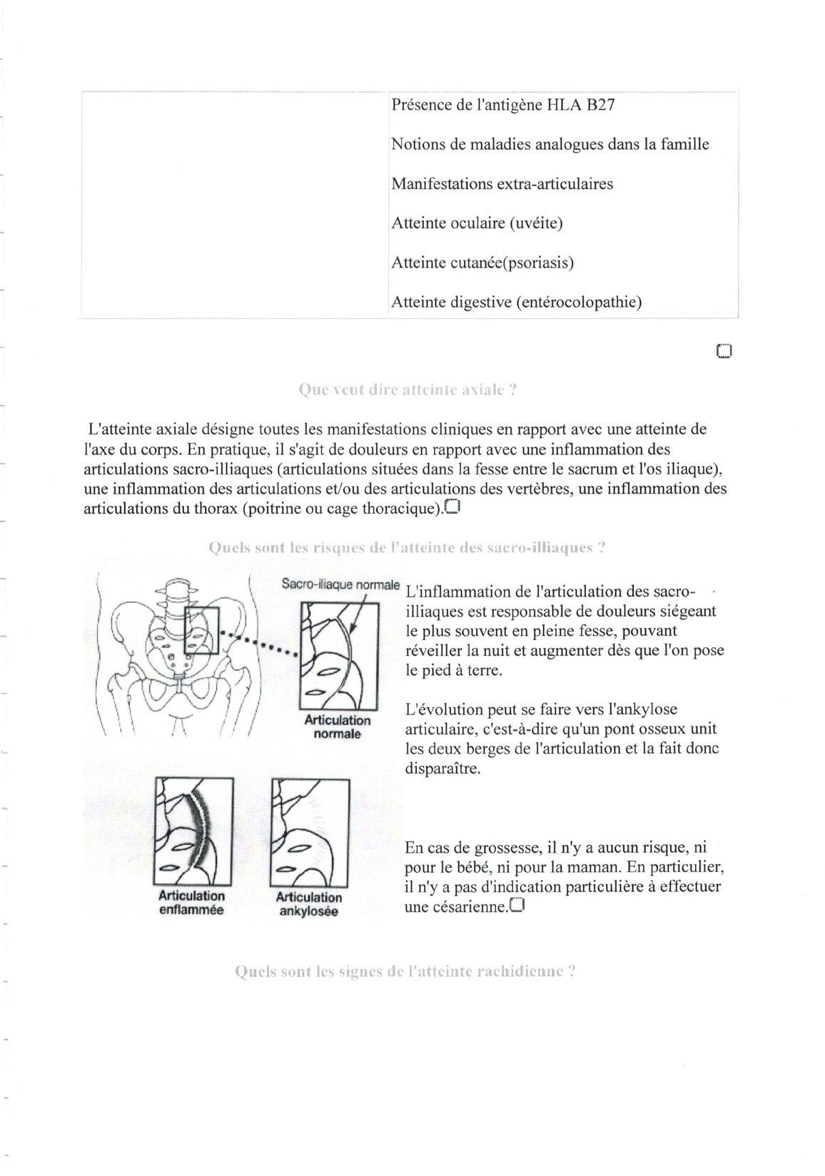 l'inflammation touche surtout les articulations du bassin (pelvis) et les ligaments qui entourent