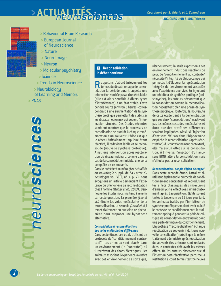 La Lettre du Neurologue - Suppl. Les Actualités au vol. VIII - n° 6 - juin 2004 7