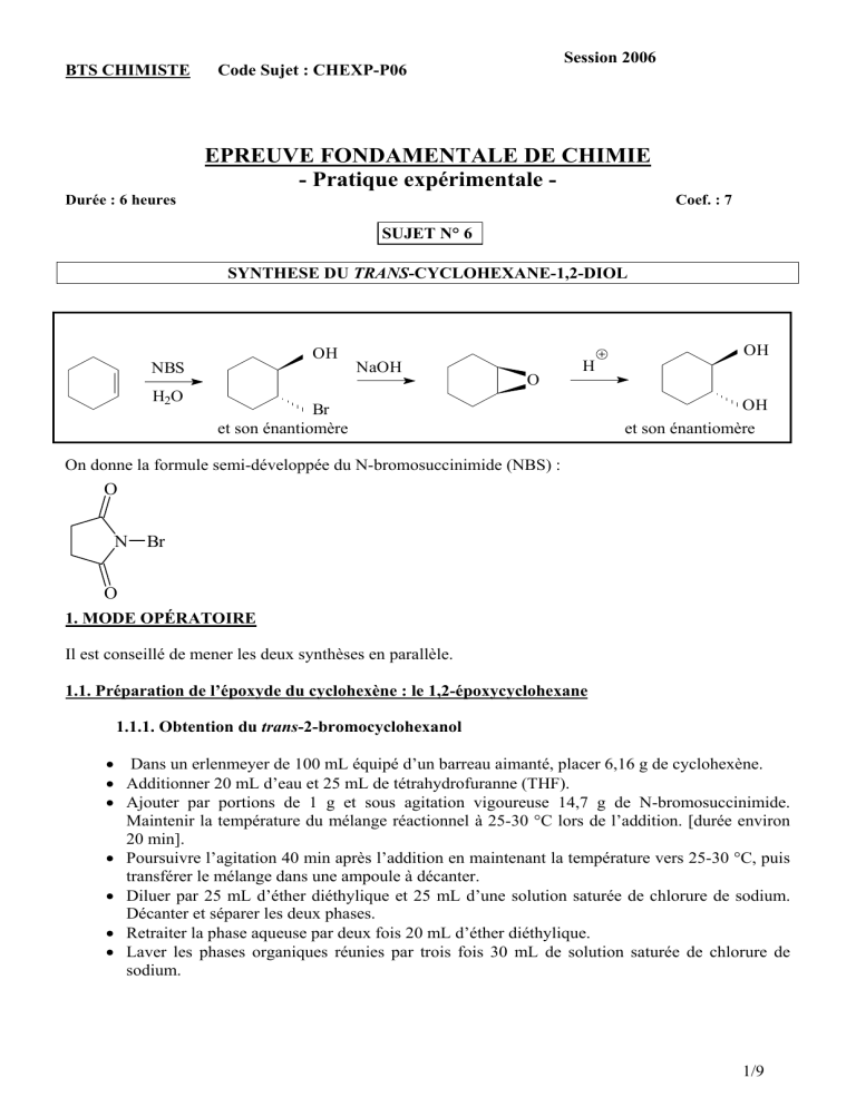 1.2. Préparation du trans-cyclohexane-1,2-diol