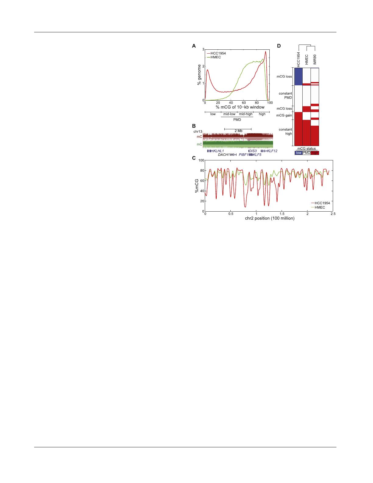 curs at loci with high mCG for both HCC1954 and HMEC (Fig. 3A).