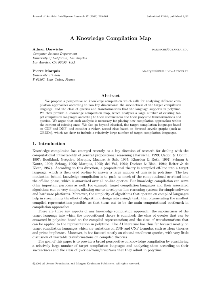 •Decomposability (Darwiche, 1999, 2001a). An NNF satisfies this property if for each con-