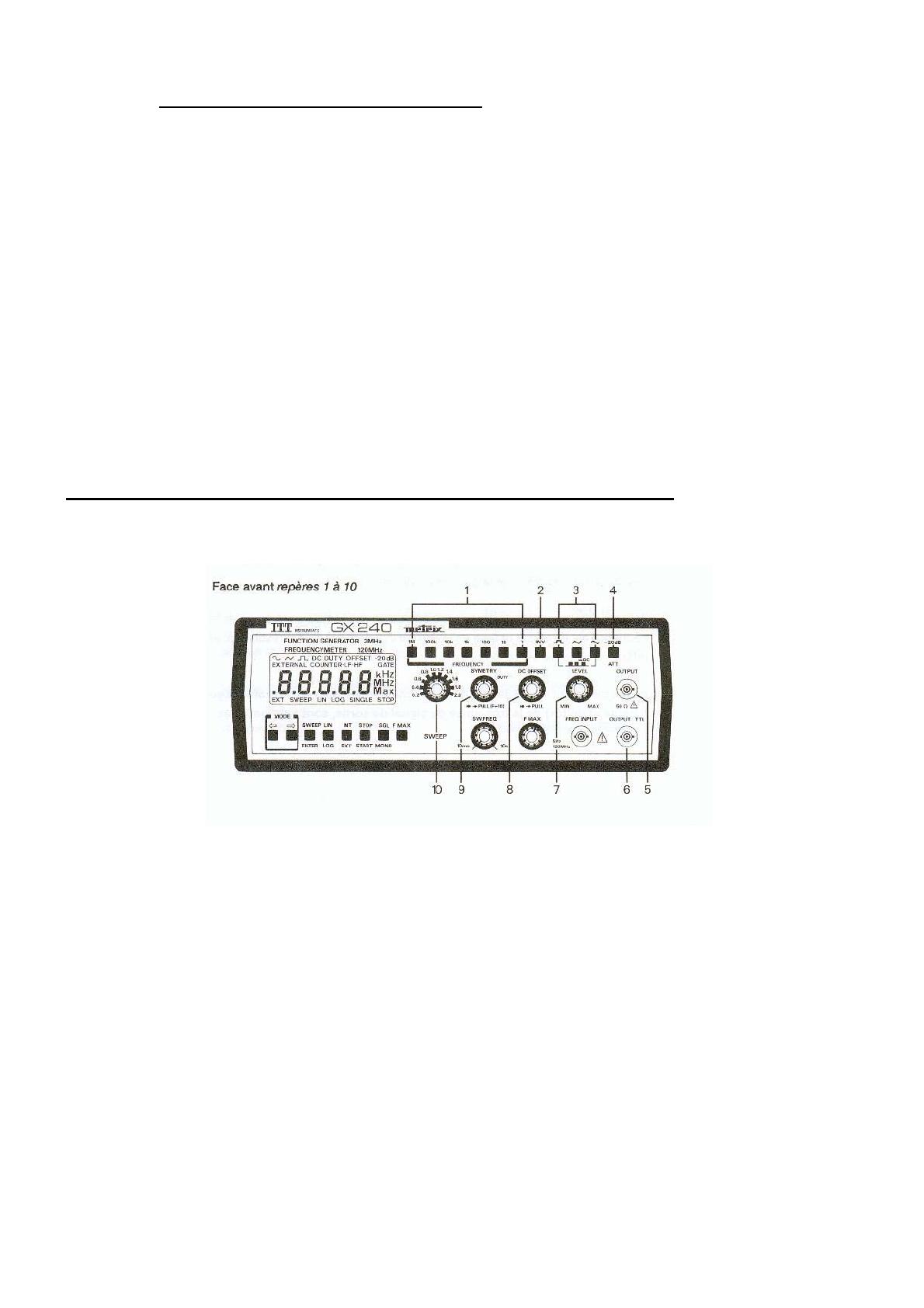 . Attention ! La fréquence du signal de sortie généré et Fmax en balayage sont divisés par 10.