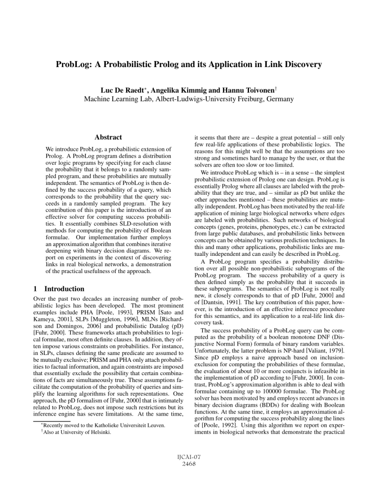 ences. Whereas ProbLog and the approach by Dantsin em-