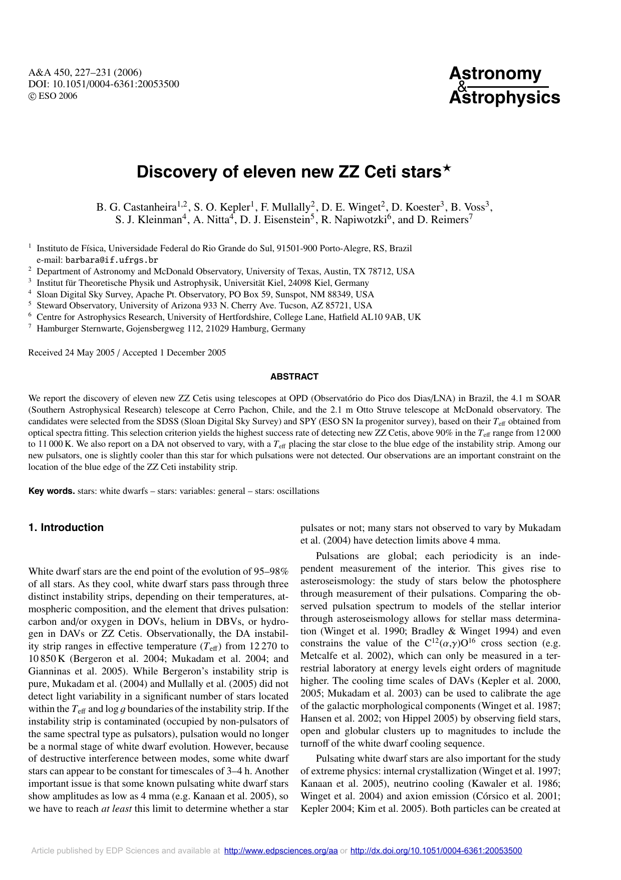 B. G. Castanheira et al.: Eleven new ZZ Cetis 231