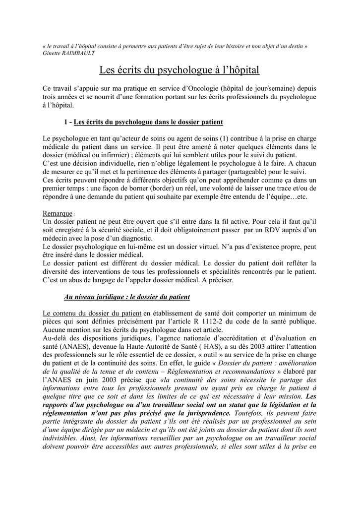 Les écrits du psychologue insérés dans le dossier patient pourront être consultés par les